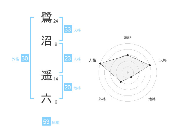 鷺沼 遥六さんを姓名の画数から五運を鑑定