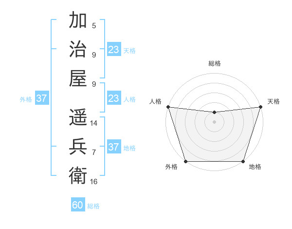 加治屋 遥兵衛さんを姓名の画数から五運を鑑定