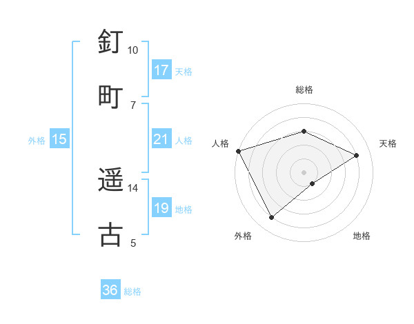 釘町 遥古さんを姓名の画数から五運を鑑定