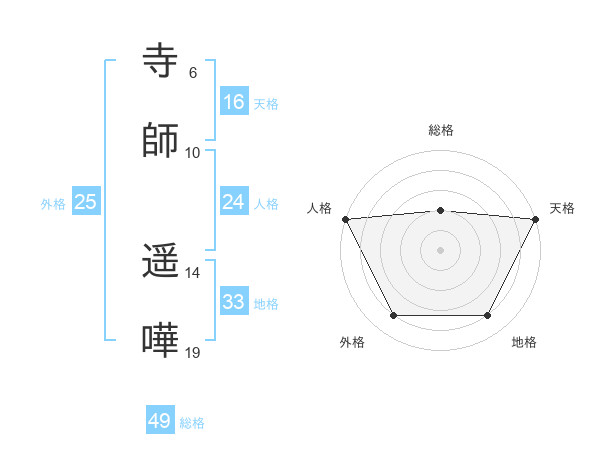 寺師 遥嘩さんの外格は25画の4点!