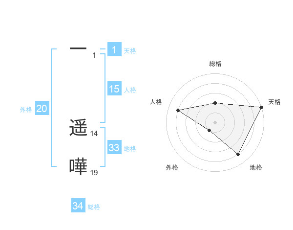 一 遥嘩さんを姓名の画数から五運を鑑定