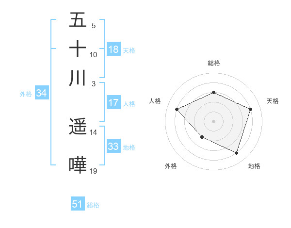 五十川 遥嘩さんを姓名の画数から五運を鑑定