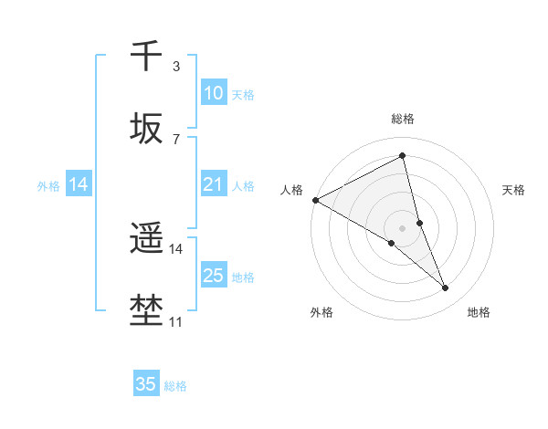 千坂 遥埜さんを姓名の画数から五運を鑑定