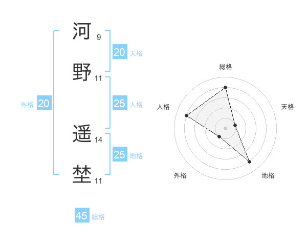 河野 遥埜さんの総格は45画の4点!
