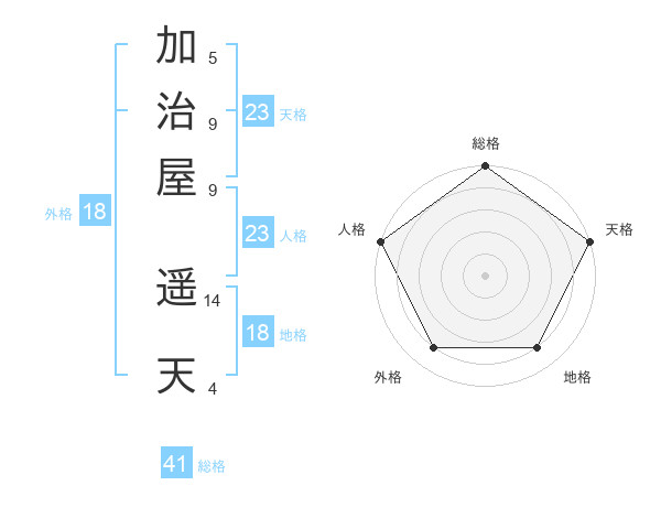 加治屋 遥天さんを姓名の画数から五運を鑑定