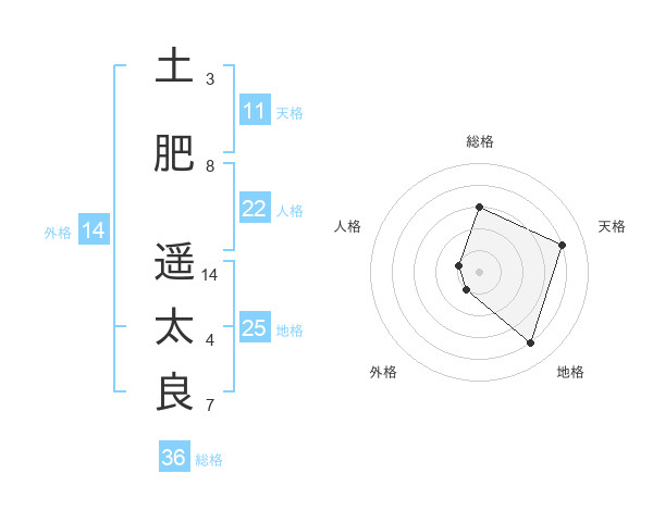 土肥 遥太良さんを姓名の画数から五運を鑑定