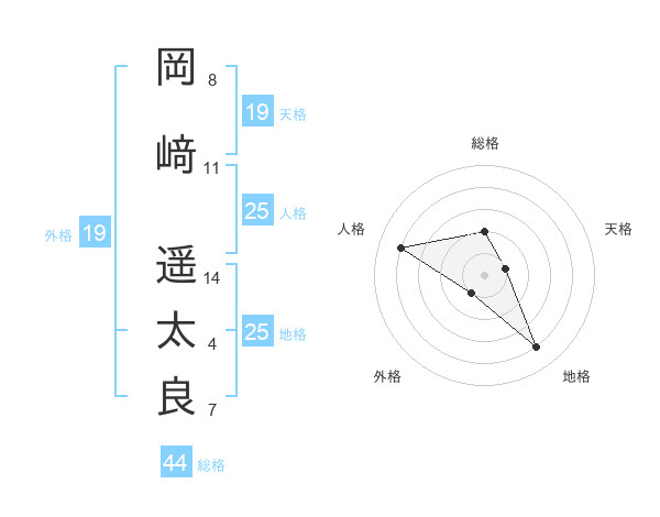 岡﨑 遥太良さんの地格は25画の4点!
