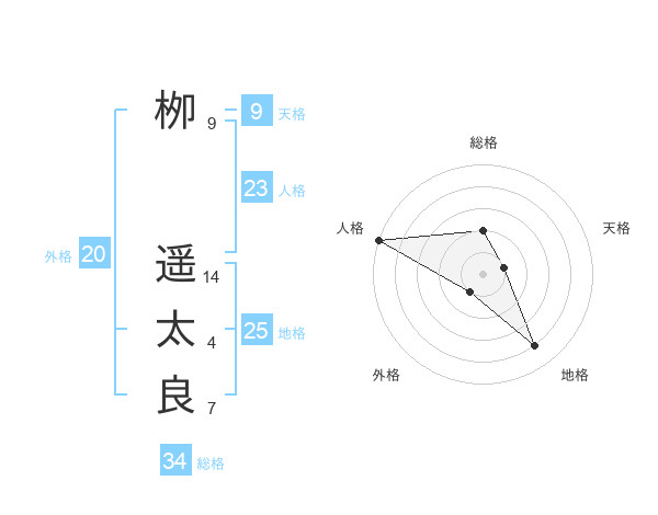 栁 遥太良さんの総格は34画の2点!