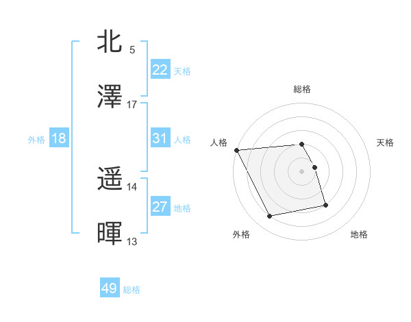 北澤 遥暉さんの総格は49画の2点!