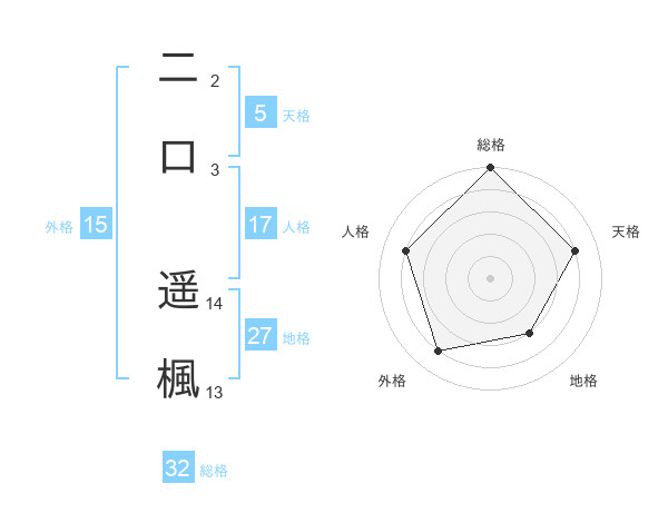 二口 遥楓さんを姓名の画数から五運を鑑定