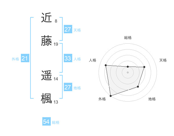 近藤 遥楓さんの総格は54画の1点!