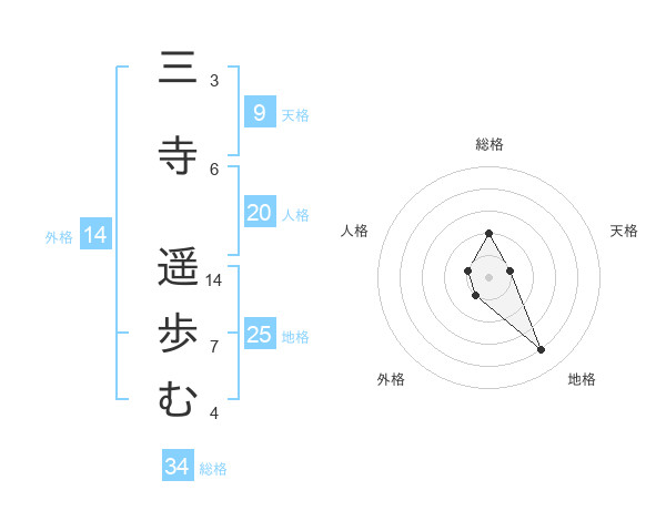 三寺 遥歩むさんの総格は34画の2点!
