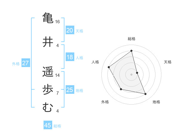 亀井 遥歩むさんの総格は45画の4点!
