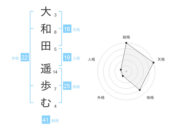 大和田 遥歩むさんを姓名の画数から五運を鑑定