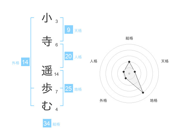 小寺 遥歩むさんの総格は34画の2点!