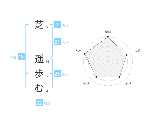 芝 遥歩むさんを姓名の画数から五運を鑑定