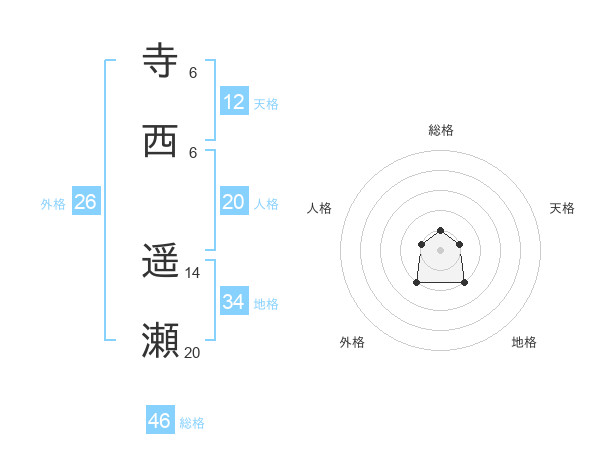 寺西 遥瀬さんの総格は46画の1点!