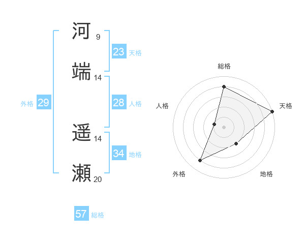 河端 遥瀬さんの総格は57画の4点!