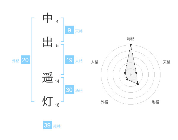 中出 遥灯さんの総格は39画の5点!