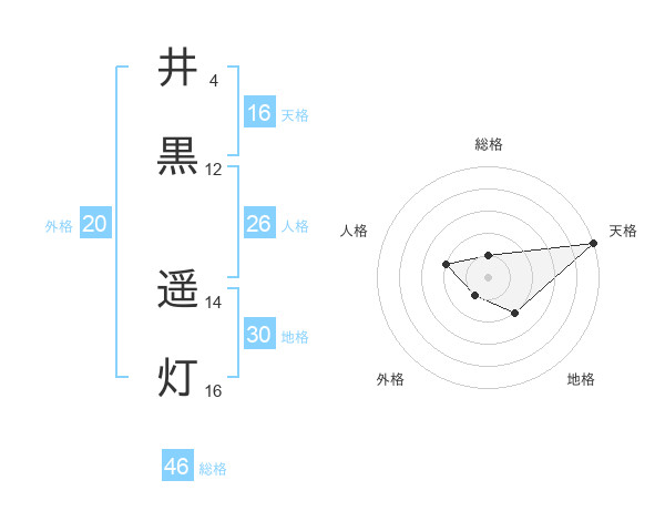 井黒 遥灯さんを姓名の画数から五運を鑑定