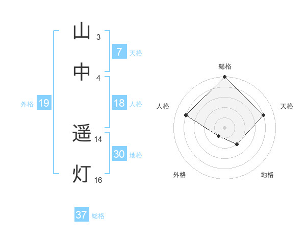 山中 遥灯さんの総格は37画の5点!