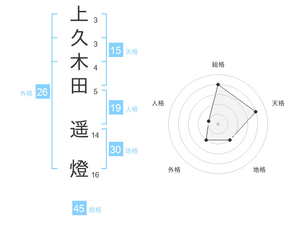 上久木田 遥燈さんを姓名の画数から五運を鑑定