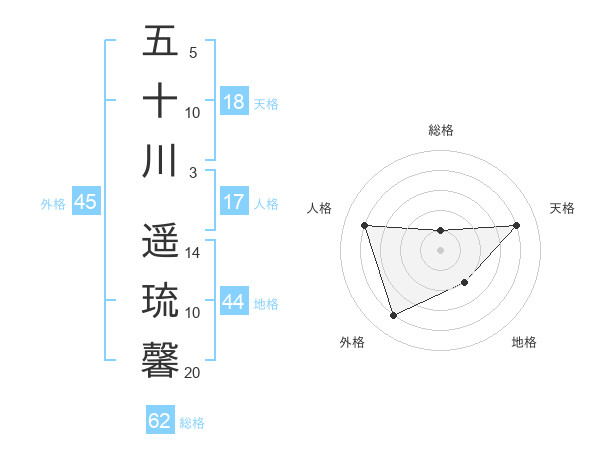 五十川 遥琉馨さんを姓名の画数から五運を鑑定