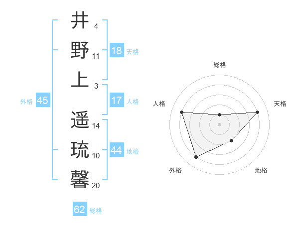 井野上 遥琉馨さんの外格は45画の4点!