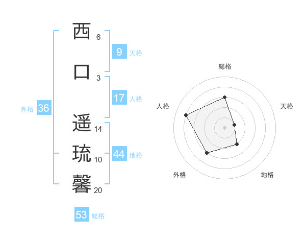 西口 遥琉馨さんを姓名の画数から五運を鑑定