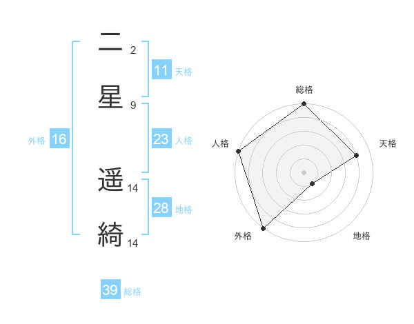 二星 遥綺さんの総格は39画の5点!