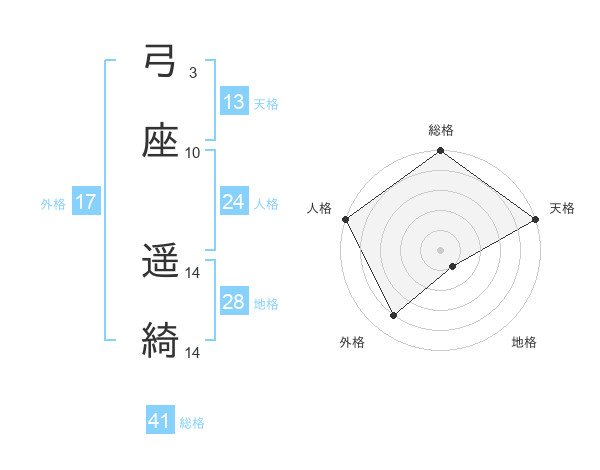 弓座 遥綺さんの天格は13画の5点!