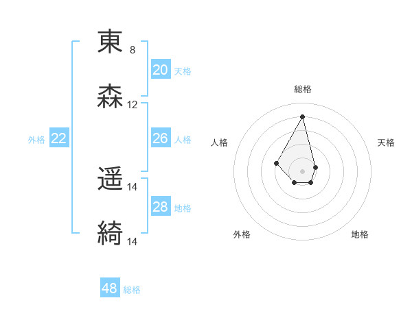 東森 遥綺さんを姓名の画数から五運を鑑定