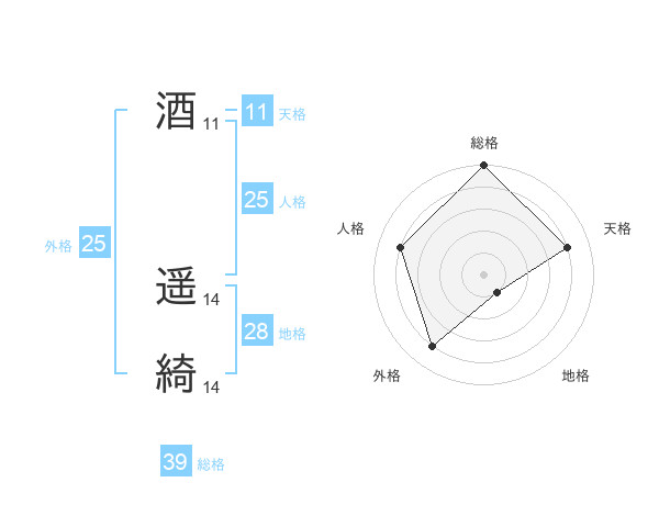 酒 遥綺さんを姓名の画数から五運を鑑定