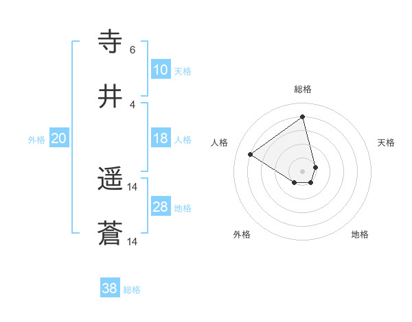 寺井 遥蒼さんの総格は38画の4点!