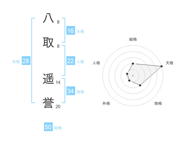 八取 遥誉さんの総格は50画の2点!