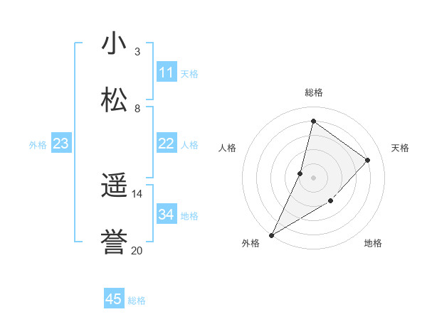 小松 遥誉さんの外格は23画の5点!