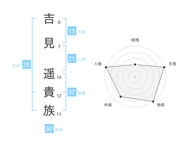 吉見 遥貴族さんの天格は13画の5点!