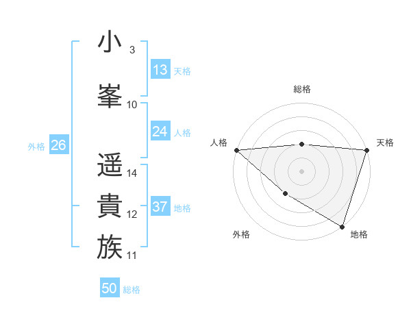 小峯 遥貴族さんの総格は50画の2点!