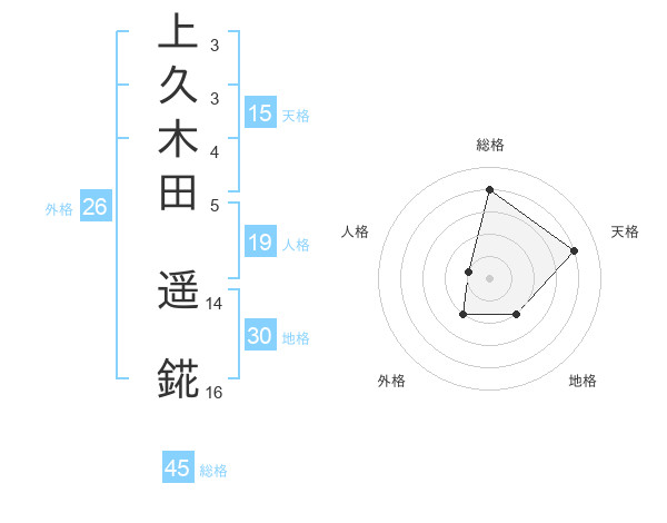 上久木田 遥錵さんの総格は45画の4点!