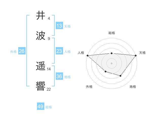 井波 遥響さんの総格は49画の2点!