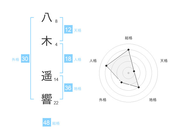 八木 遥響さんの総格は48画の4点!