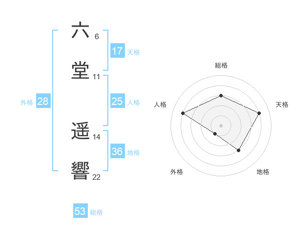 六堂 遥響さんの外格は28画の1点!