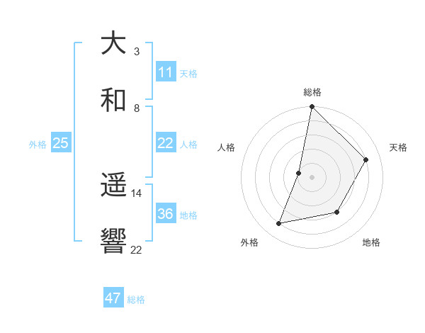 大和 遥響さんの総格は47画の5点!