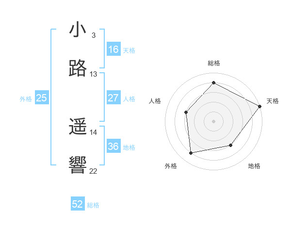小路 遥響さんの総格は52画の4点!