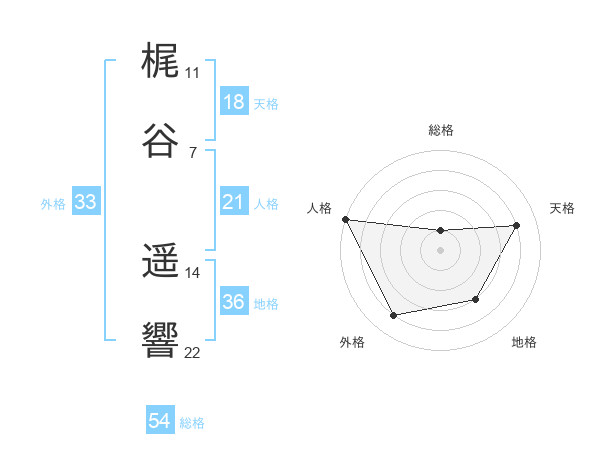 梶谷 遥響さんの人格は21画の5点!