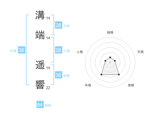 溝端 遥響さんの総格は64画の1点!