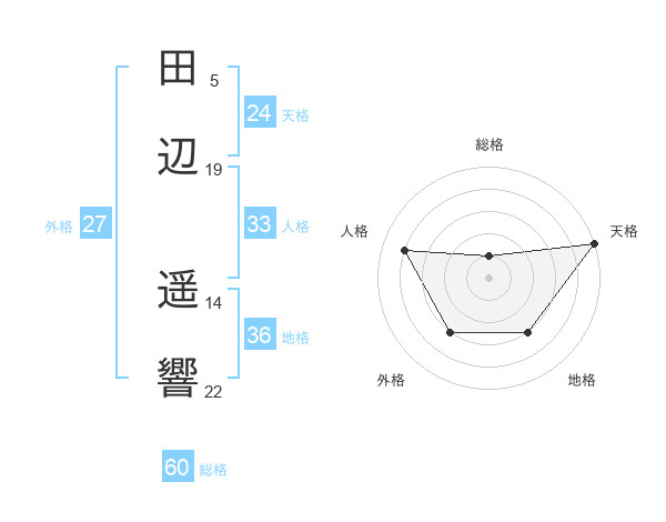 田辺 遥響さんの天格は24画の5点!