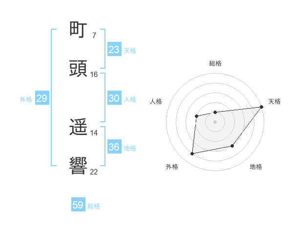 町頭 遥響さんを姓名の画数から五運を鑑定