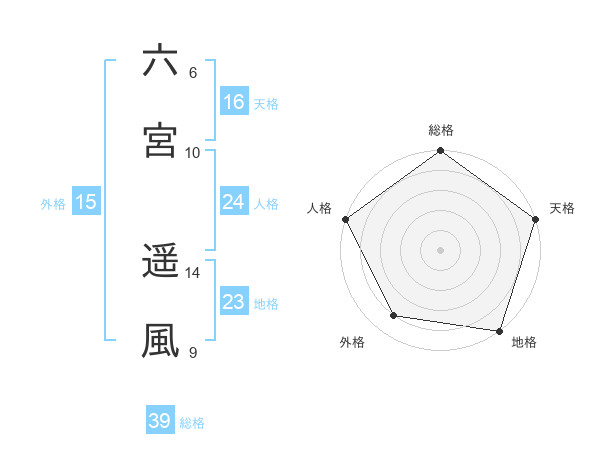 六宮 遥風さんの総格は39画の5点!