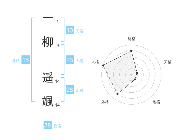 一柳 遥颯さんを姓名の画数から五運を鑑定